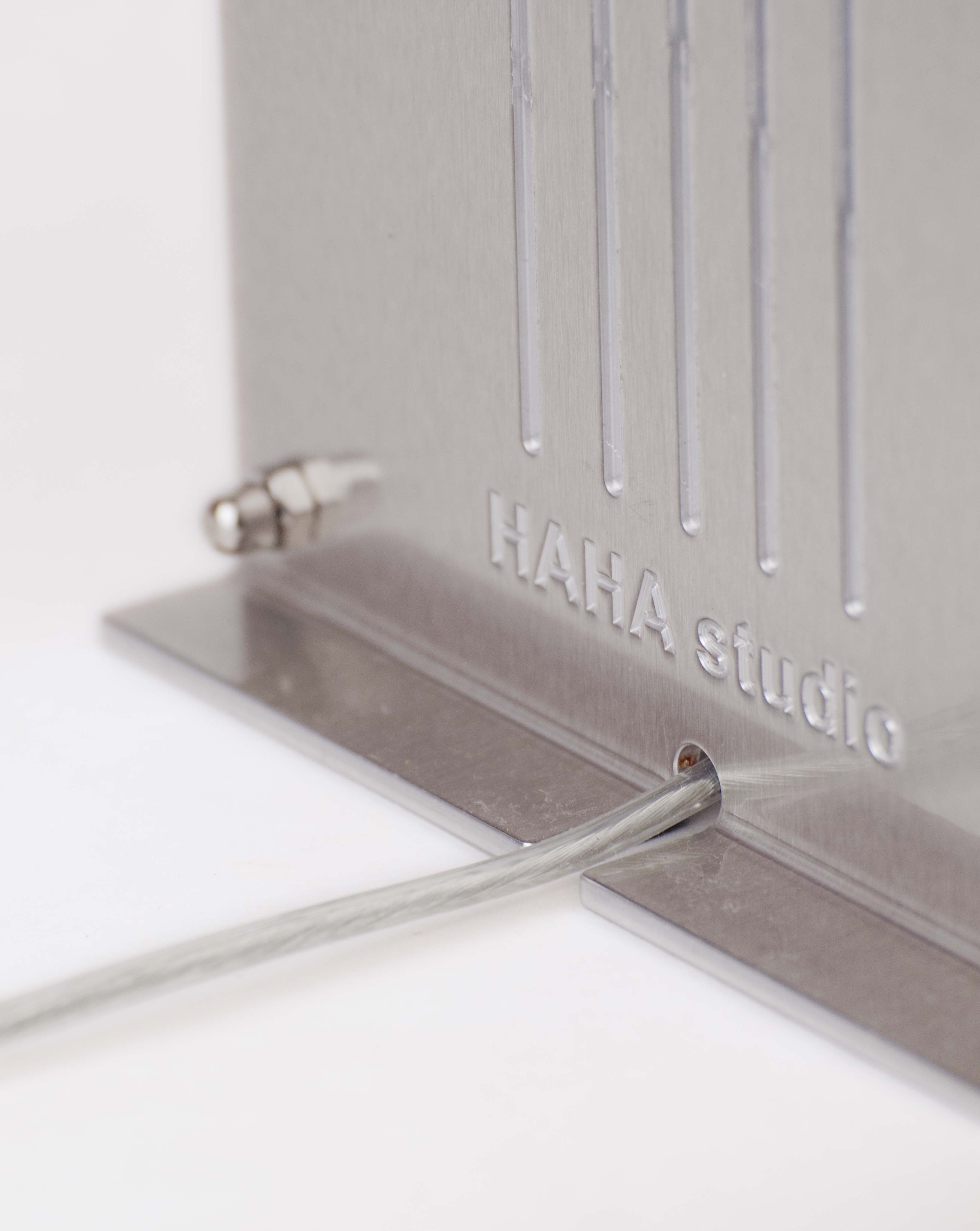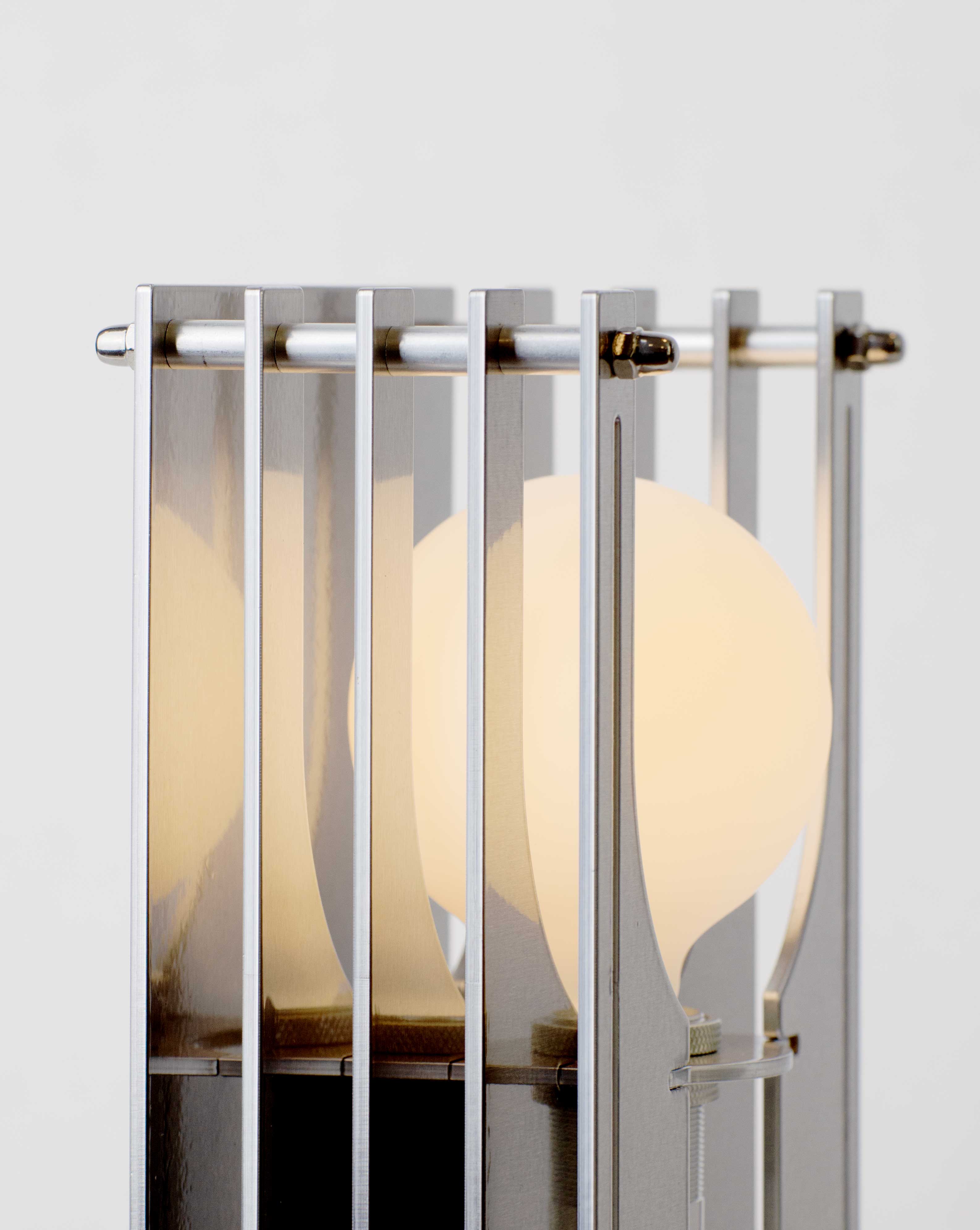 The Grid table lamp is built from stacked aluminum sheets. The spacing between them allows light to spread softly through the fixture. Fitted with an E27 socket A cord and bulb are included with your purchase. Designed and crafted in Sweden.