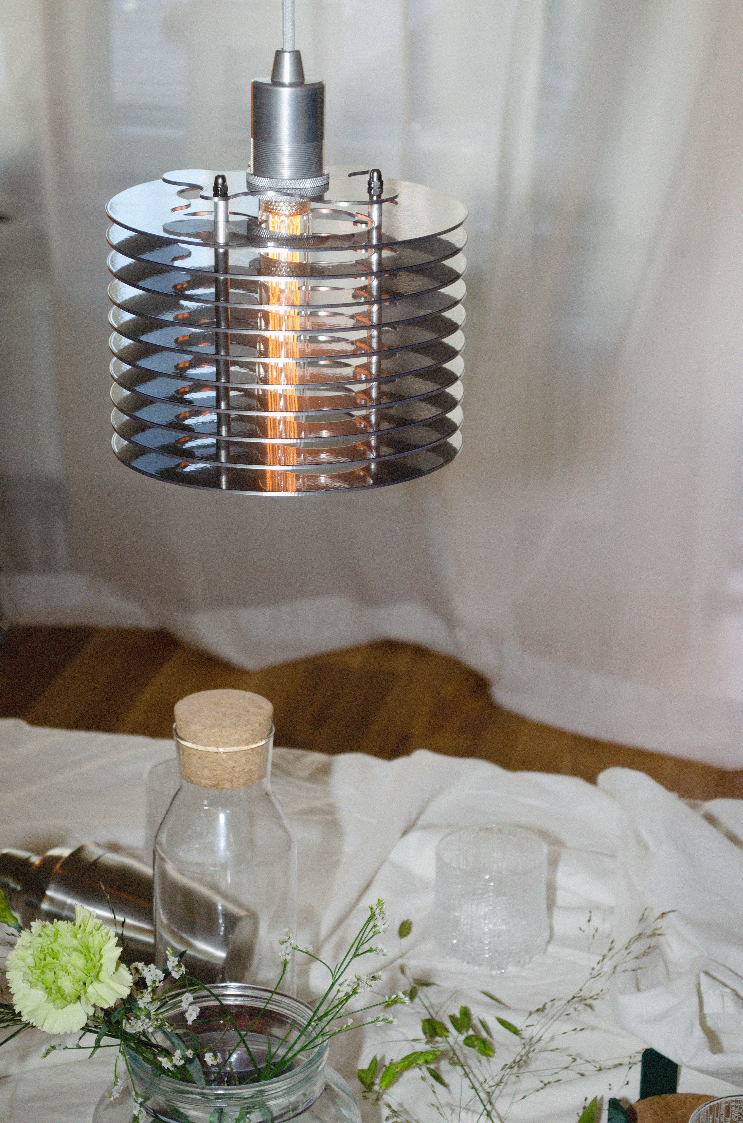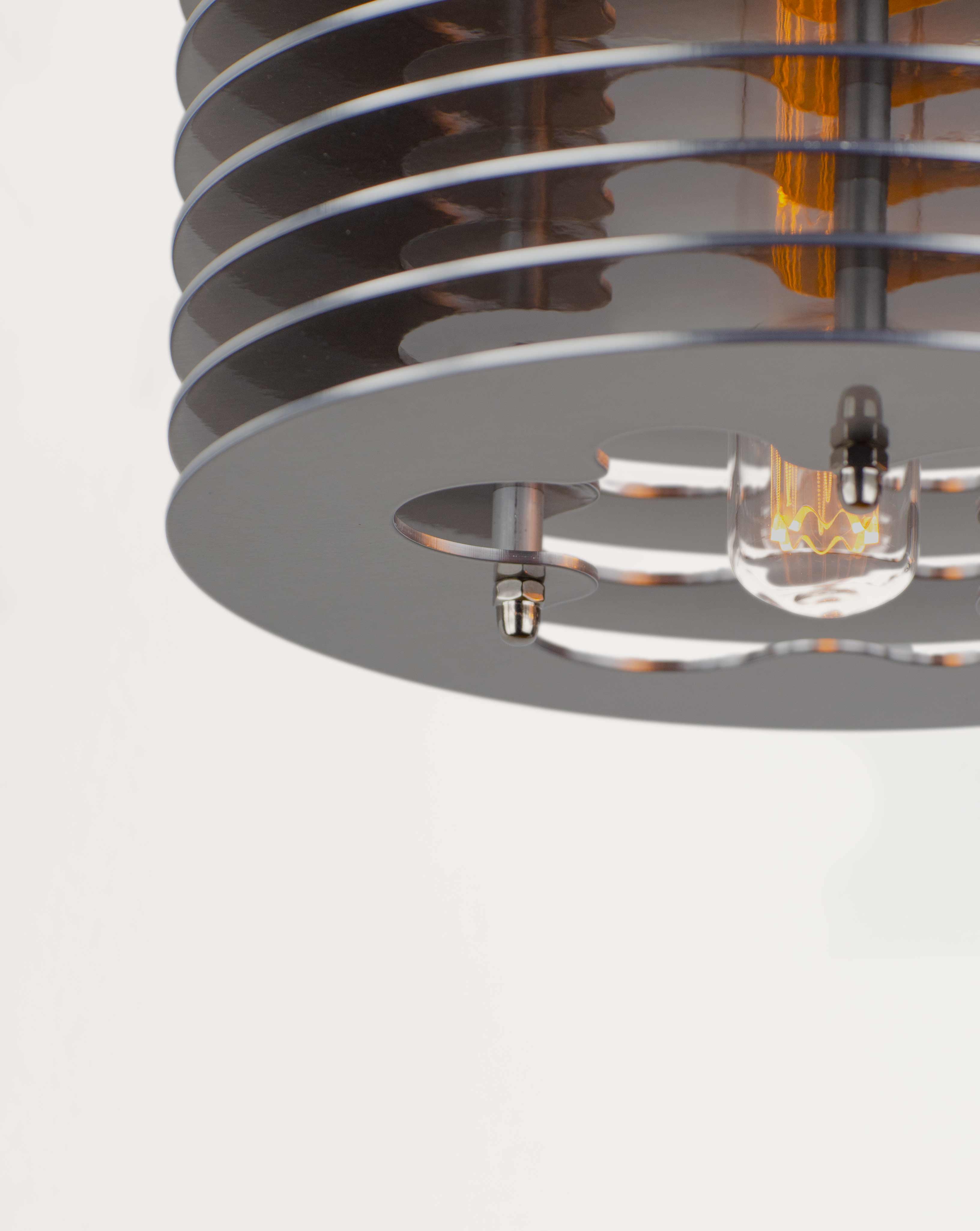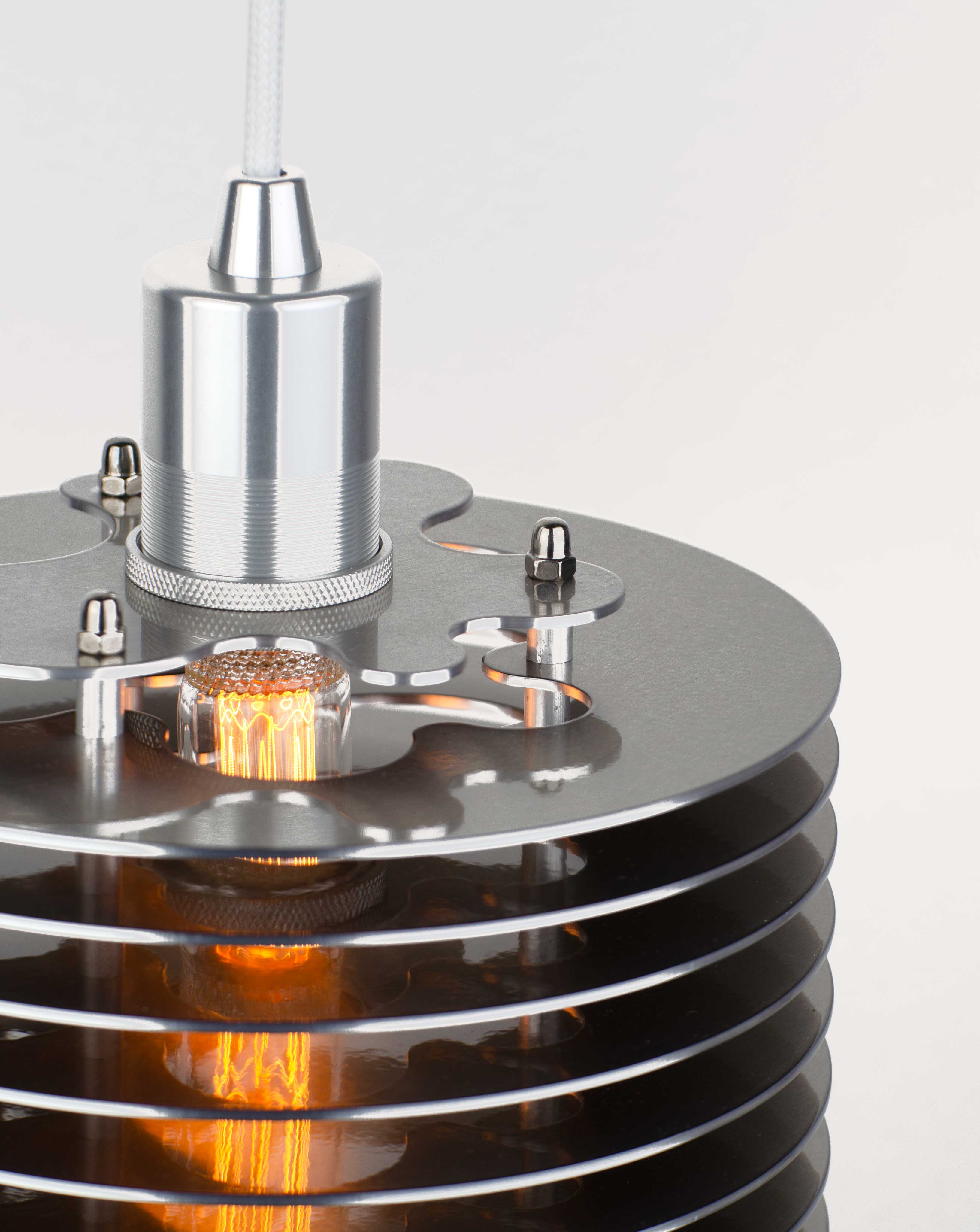The Splash pendant lamp consists of aluminum discs assembled together. The spacing between the discs allows the light to further spread through the fixture. A long extruded LED bulb ties the piece together. Fitted with an E27 socket. A cord and bulb are included with your purchase. Designed and crafted in Sweden.